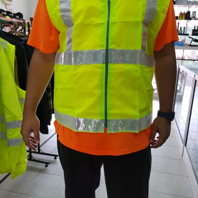 Safety Vest With Collar Zipper And Reflective Tape Baju Keselamatan Pemantul Cahaya Shopee Malaysia